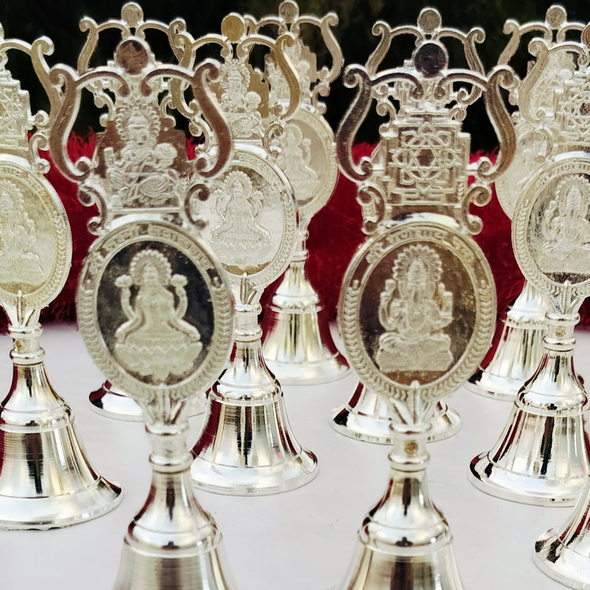 German silver budget friendly laxmi Ganesh engraved bell for Gifting